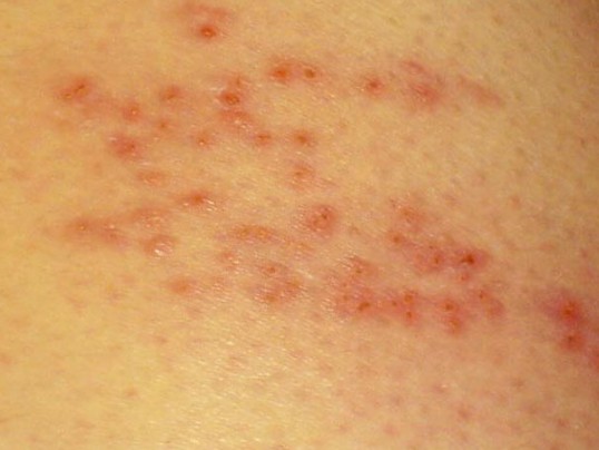 2. 작은 물집과 붉은 발진
